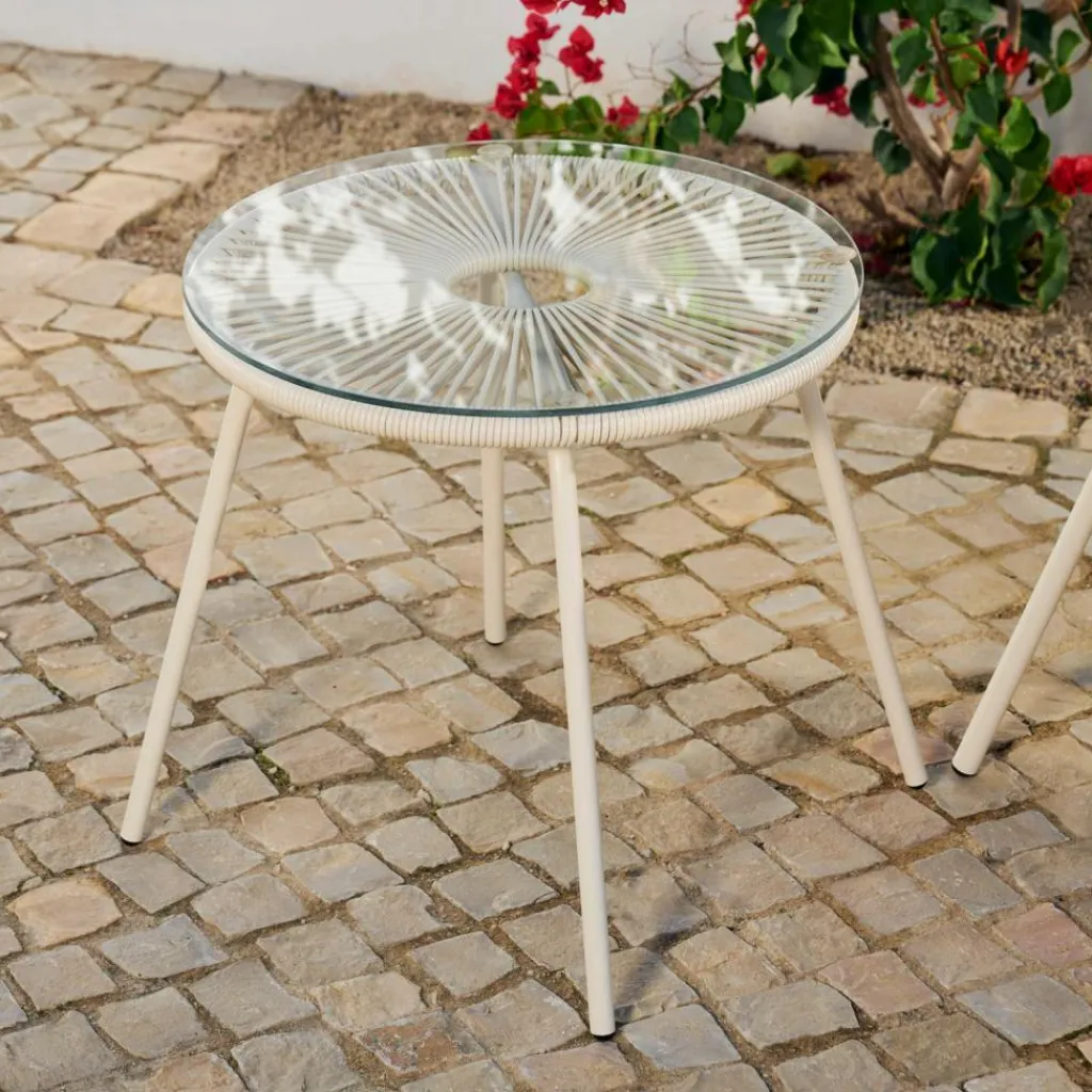 - Struttura, Acciaio, vernice a polvere, Struttura, Polietilene, Ripiano del tavolo, Vetro