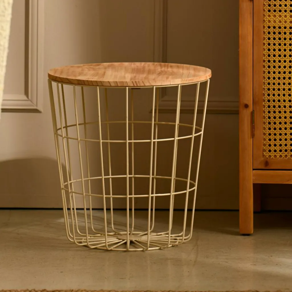 - Ripiano del tavolo: FSC Pino (Cina), Legno di pino, Cesto: metallo, Vernice a polvere